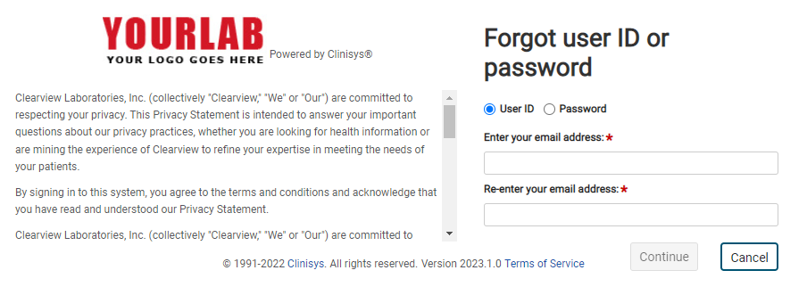 If you forget your user ID, LabOnline can send it to the email address associated with your account.